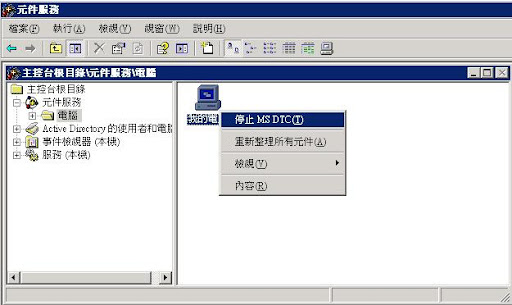 4. 然後在回到我的電腦 - 右鍵 - 內容 - 停止 MS DTC - 然後在重啟 MS DTC就可以了!